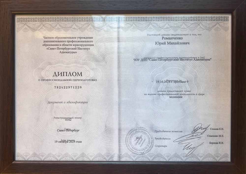 Профессиональный медиатор в Петрозаводске - Романченко Юрий Михайлович